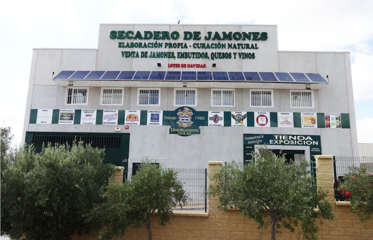 En Distribuciones Gea contamos con nuestro propio secadero de jamones, ubicado en Diezma (Granada), aquí elaboramos dos líneas de jamones de máxima calidad, el jamón blanco y el de raza Duroc, además de tocinos y pancetas. Todos los Jamones que fabricamos, son frescos de matanza nunca congelados, de hembras y machos castrados y tras una rigurosa selección elaboramos nuestro jamón "Duro-Berk" Gran Reserva con más de 20 meses de curación, así como nuestro jamón T.J. Reserva con más de 16 meses de curación natural. También elaboramos una excelente gama de: panceta duroc, panceta ibérica de bellota y tocino ibérico de bellota.
